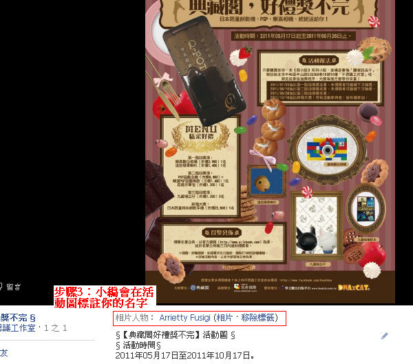 步驟3:小編會在【典藏閣好禮獎不完】活動圖標注你的名字,即完成參加。